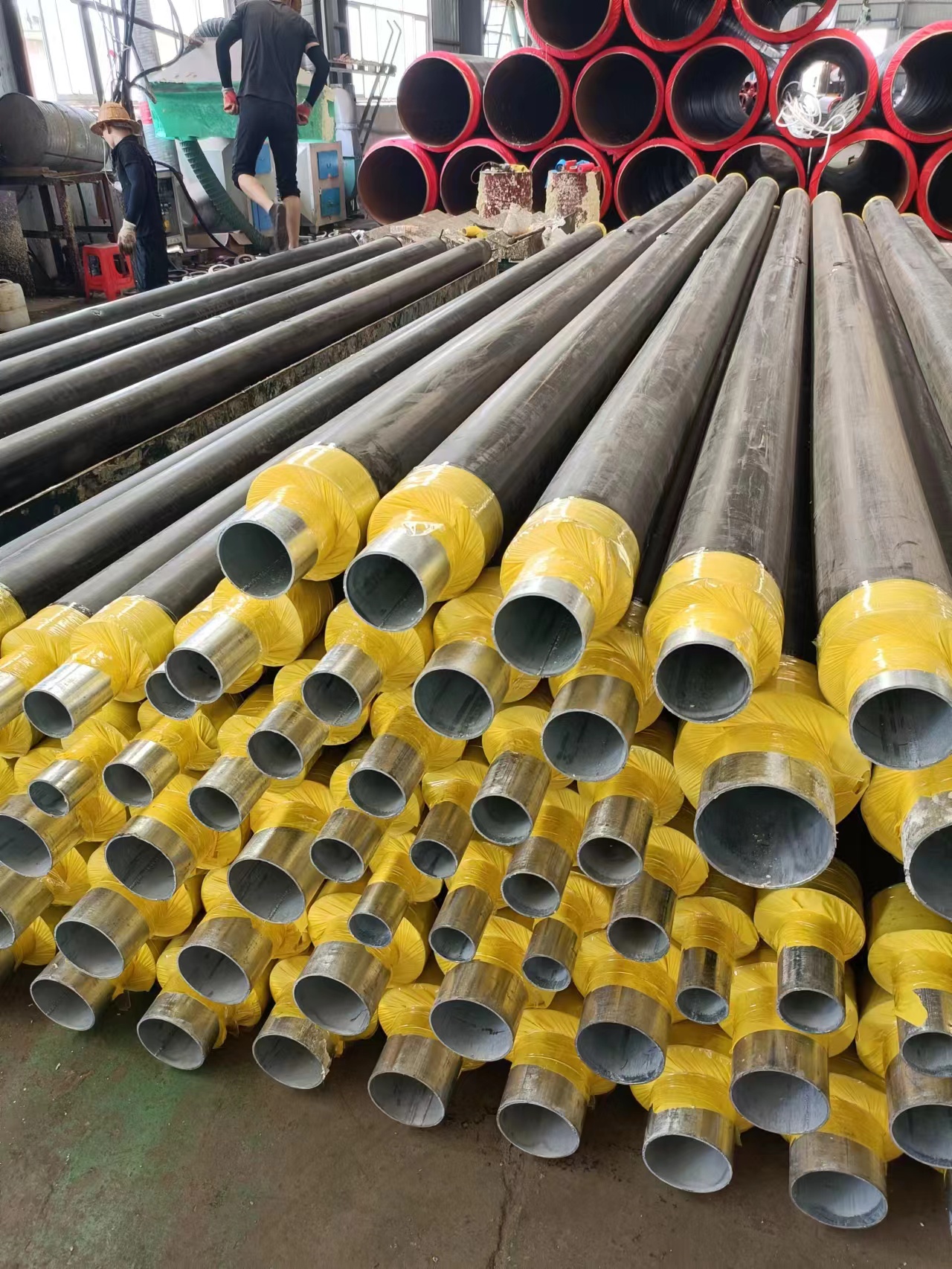 直埋管道的保护管的首要问题是严密防水的可靠性,此外要有良好的机械强度,钢套管由于强度高采用焊接连接,防水的密封性能可靠性十分高,另外,其耐高温性能也是其它外保护管所不能比拟的。在地下水位高的地区,为保证地下水不影响蒸汽直埋管道的正常运行,外保护层采用坚固、密闭的钢管外壳 钢套钢保温钢管1.防腐层:保护外