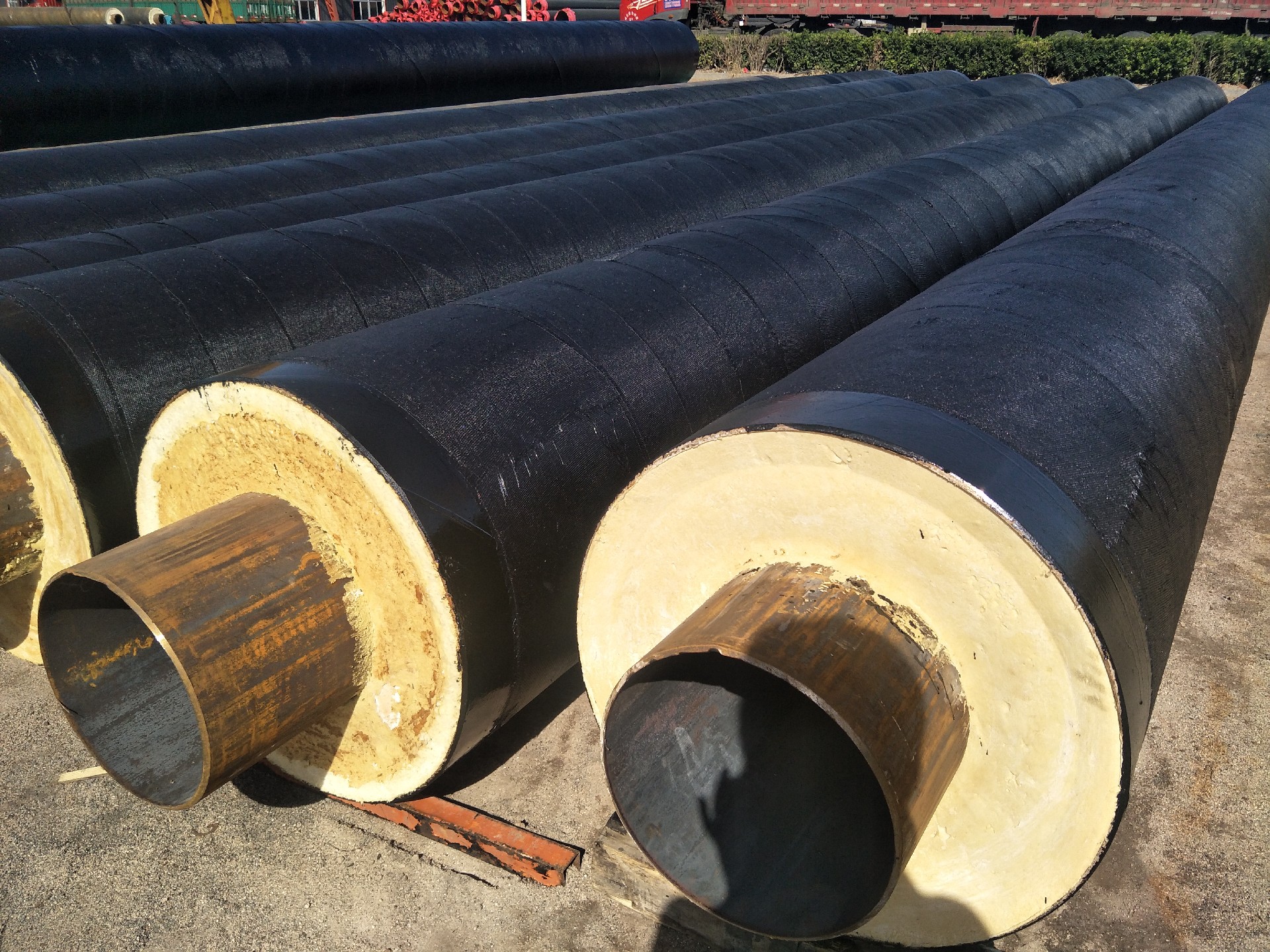 聚氨酯保温管道,全称:高密度聚乙烯塑料外护聚氨酯泡沫预制直埋保温管,由输送介质的,工作钢管、聚氨酯保温层、聚乙烯塑料外护管,通过设备依次向外结合而成。外径mm 285壁厚mm 4.4重量Kg 3.724允许偏差mm ±0.32对应钢管外径mm 219 等.....对应保温层厚度mm 30对应套袖mm 2901 、降低工程造价。2 、热损耗低,节约能源。3