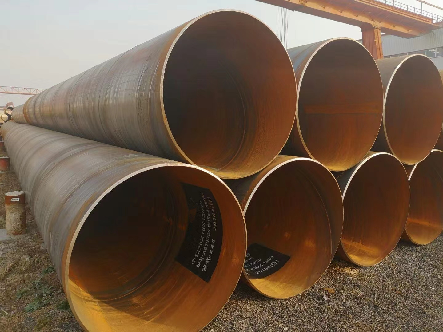 螺旋焊管:是将低碳碳素结构钢或低合金结构钢钢带按标准的螺旋线的角度(叫成型角)卷成管坯,然后将管缝焊接起来制成,它可以用较窄的带钢生产大直径的钢管。其规格用外径*壁厚表示,焊管应保证水压试验、焊缝的抗拉强度和冷弯性能要符合规定。从焊接工艺而言,螺旋焊管与直缝钢管的焊接方法一致,但直缝焊管不可避免地会有